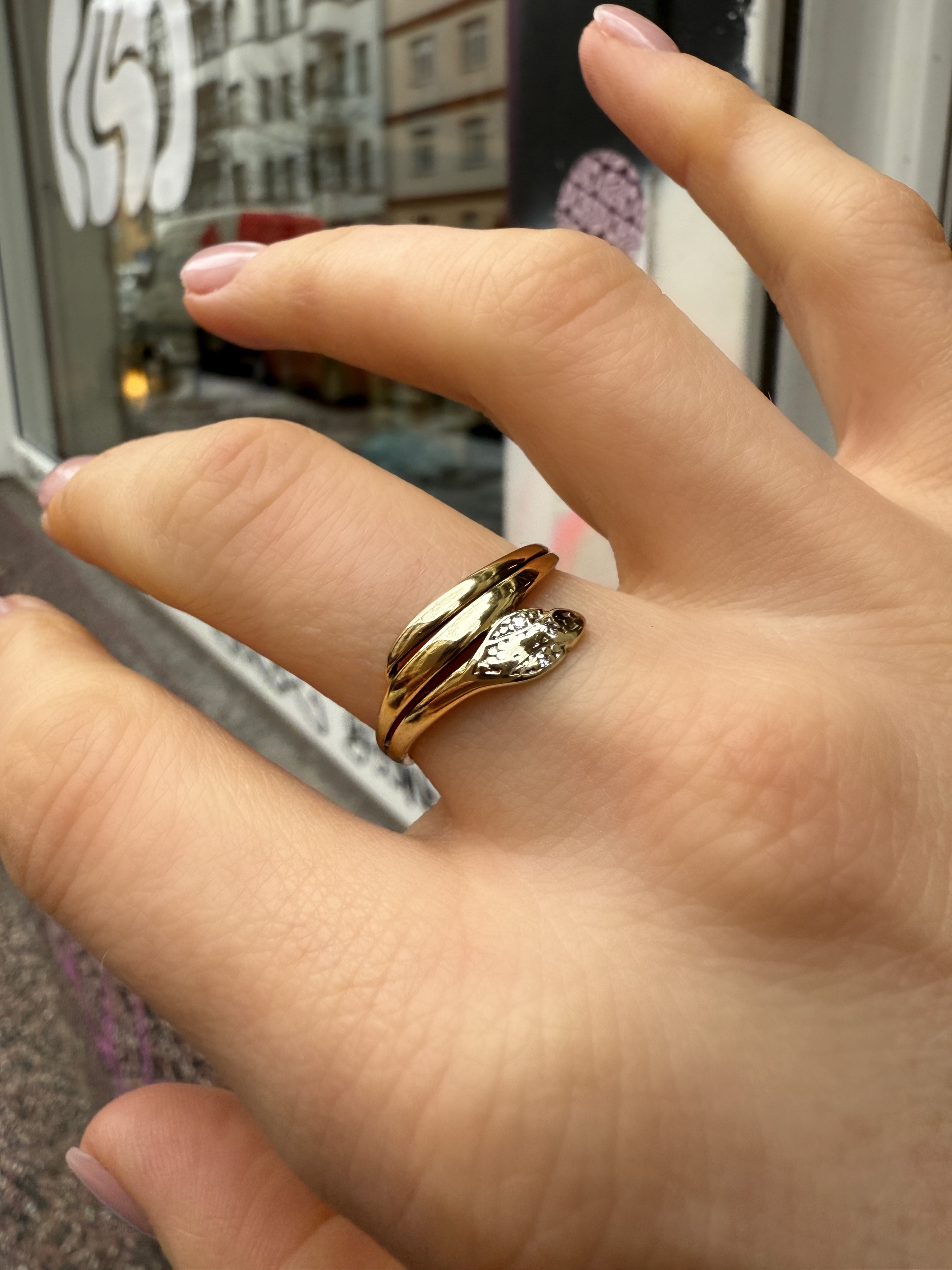 #612 8k Snake Ring mit 3 Diamanten - RG 56