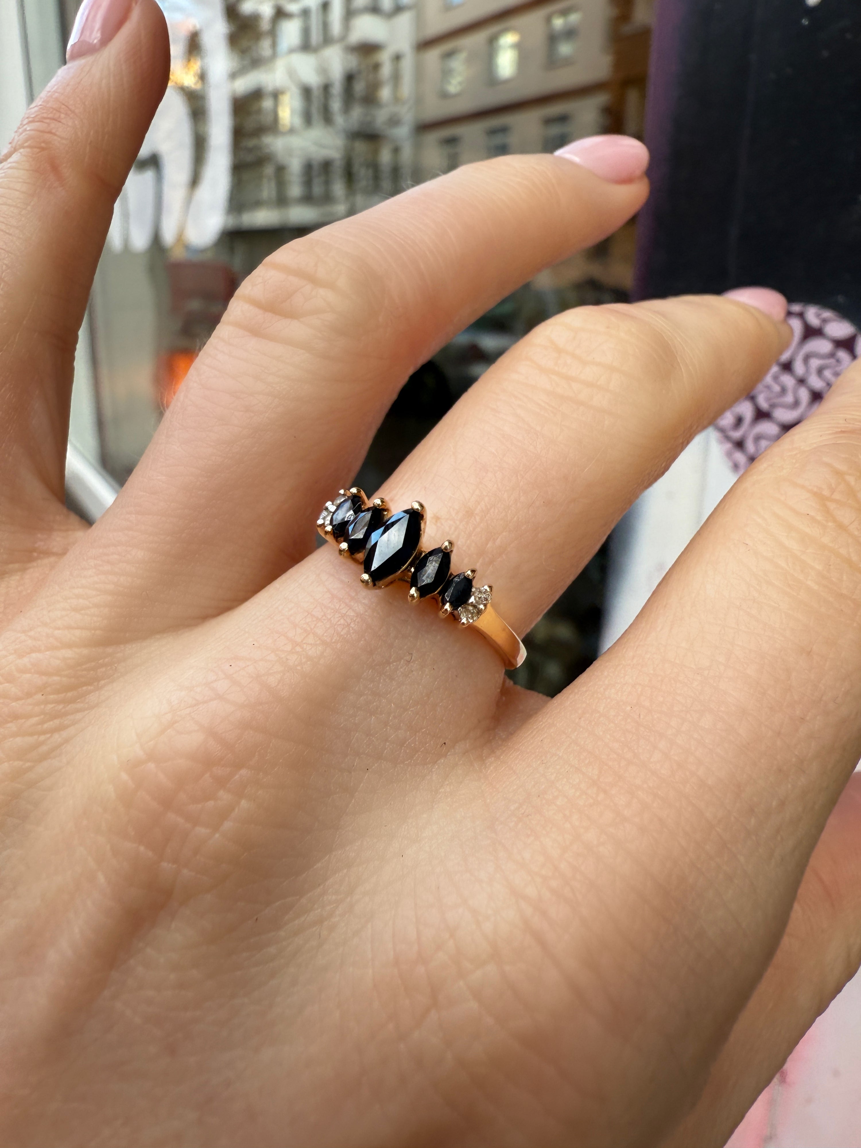 #371 10k Ring mit 5 Saphiren & 4 Diamanten - RG 54